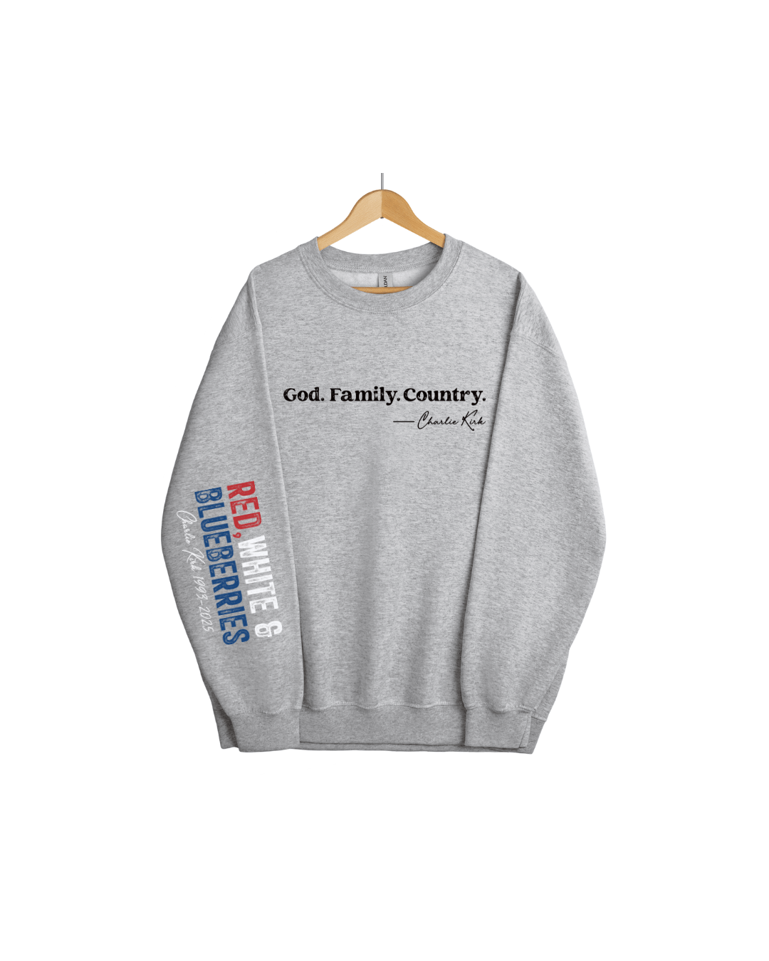 Carry a legacy of love, faith, and sacrifice with this deeply meaningful crewneck. This piece honors Charlie Kirk and the beautiful, enduring values he championed, immortalized in his own words: “God. Family. Country.” It’s more than a sweater; it’s a soft embrace and a bold declaration of what truly matters.