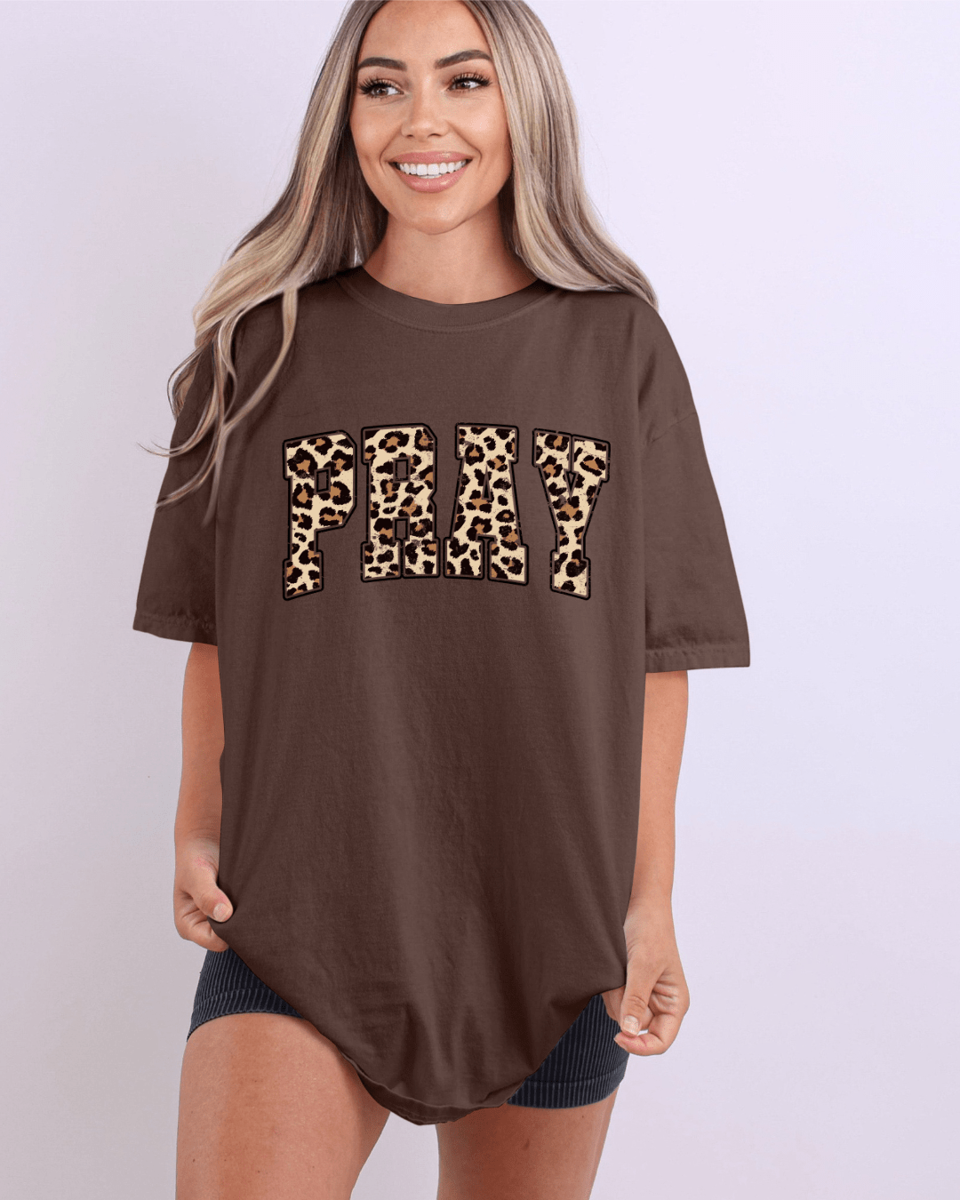 Make a bold statement of faith with a touch of fierce style. Our “PRAY” tee combines a timeless message with a modern, on-trend leopard print varsity letter design on a rich espresso-colored base. This isn’t just a fashion statement; it’s a confident declaration of your most powerful spiritual weapon. Designed for the woman who isn’t afraid to stand out, this soft, premium tee empowers you to carry your faith with confidence and spark meaningful conversations wherever you go.