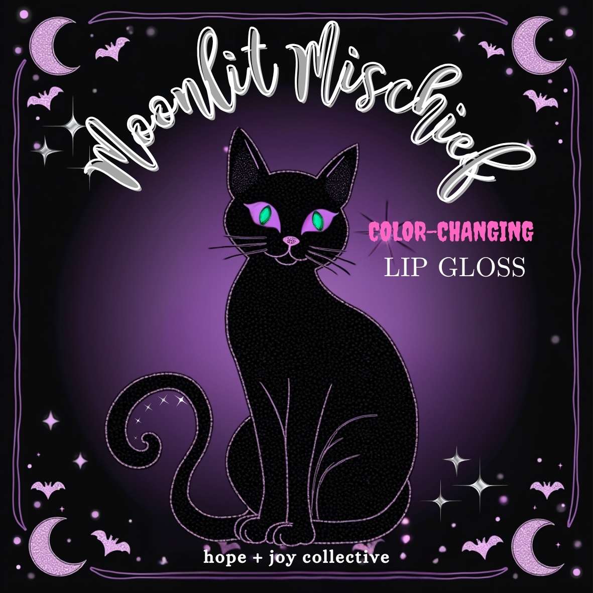 Meet our limited-edition Moonlit Mischief Color-Changing Lip Gloss, a shimmery black gloss that transforms into a luscious pink hue unique to you. But here’s the kicker—it’s not just a pretty face. We’ve brewed up this shimmery elixir with hydrating, nourishing ingredients that’ll leave your lips feeling as good as they look. Plus, it’s vegan, cruelty-free, and made in small batches—just like a secret potion.