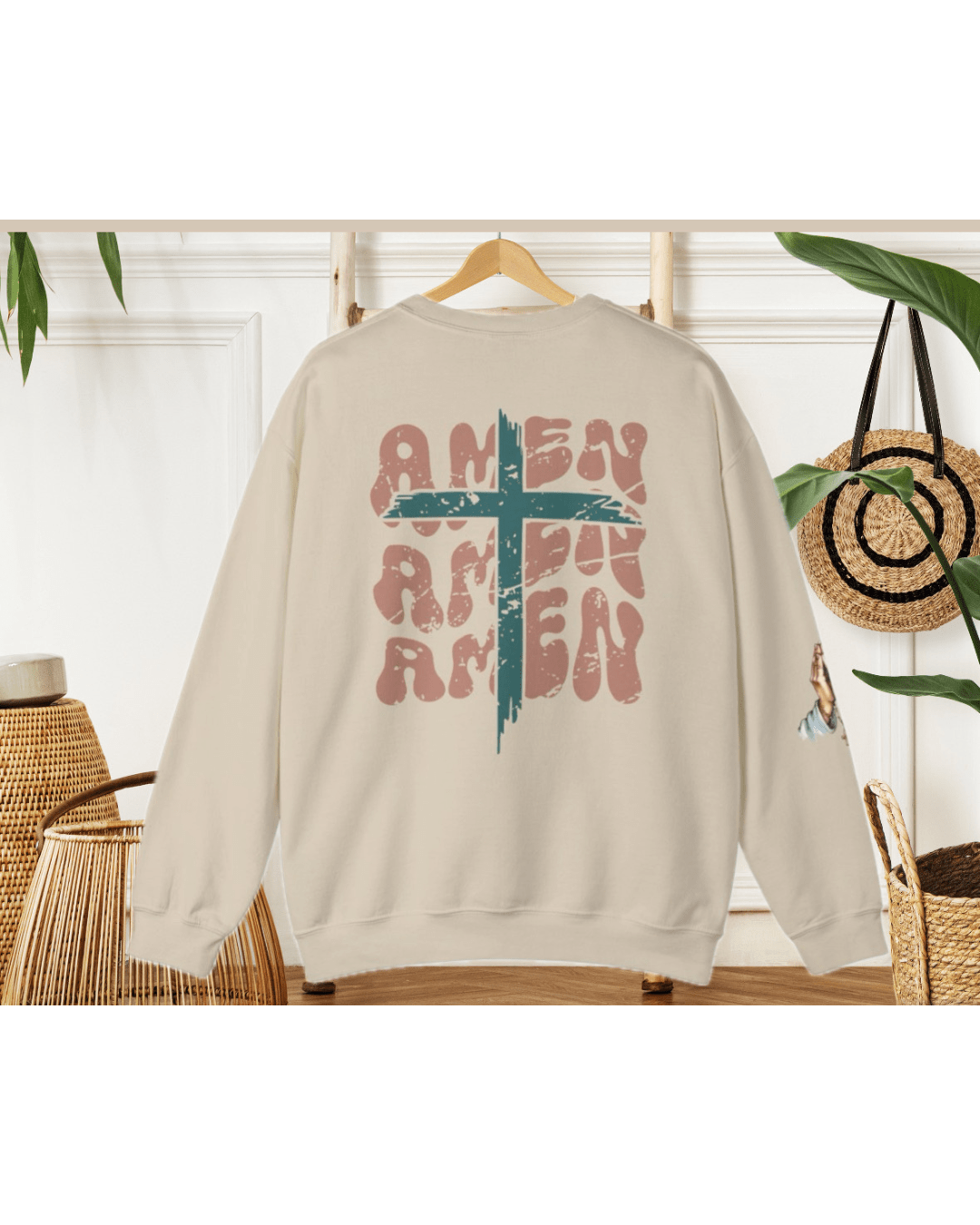 Claim the power of your prayers with quiet confidence. Our “Prayer Claimed” crewneck is designed for the woman who knows that ‘Amen’ is not just the end of a prayer—it’s a powerful declaration of faith, meaning “so be it.” With a bold “AMEN” across the back and a delicate intertwined cross and heart on the front, this premium sweatshirt is a wearable affirmation of God’s faithfulness. In soothing white and sand colors, it’s the perfect piece to wrap yourself in comfort while you boldly claim His promises.