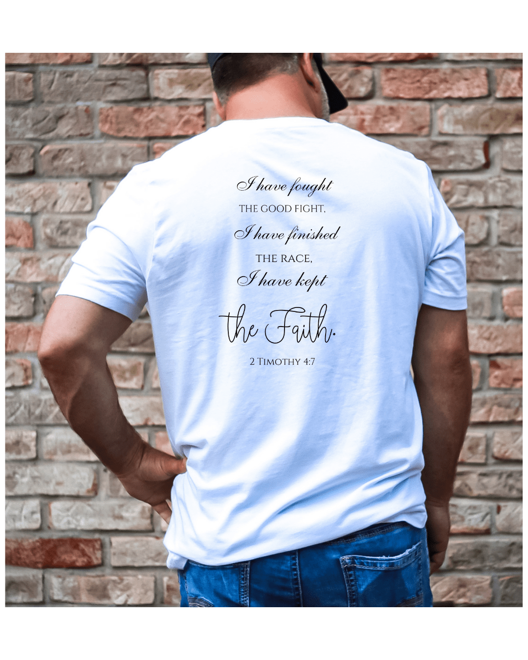 - Powerful Dual-Sided Design: The bold American flag and “Well Done, Faithful Servant” message on the front make a silent, strong statement. The full 2 Timothy 4:7 on the back—“I have fought the good fight, I have finished the race, I have kept the faith”—provides the spiritual foundation and completes the tribute.